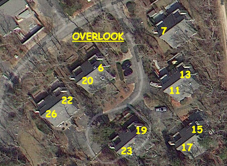 Sea Pines began construction in 1973-1974 and was built in four phases. Landing Lane is Phase 1; Grove Lane is Phase 2; Friendship Lane, Hollow Lane, and Duneward Lane are Phase 3; and Knoll Lane, Overlook Lane and Sea Pines Drive are Phase 4.
